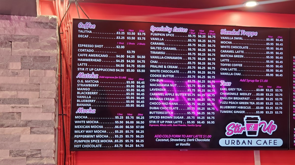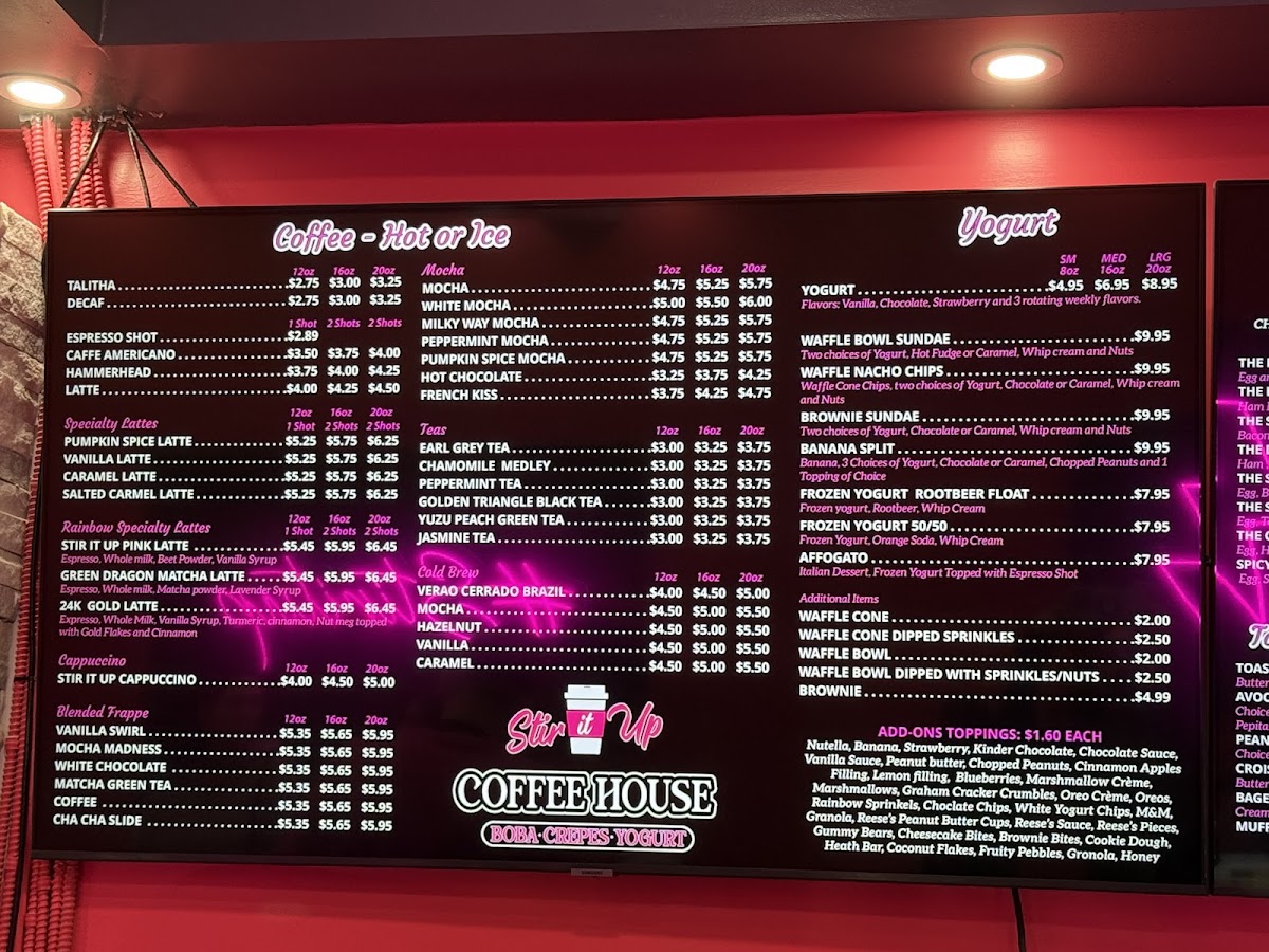 As you step inside, you’re greeted by a warm and inviting atmosphere, perfect for unwinding or catching up with friends. The friendly staff creates a welcoming vibe, treating each customer like family, as many rave in their glowing reviews. “Everyone is always super sweet & helpful,” says one regular, echoing the sentiment shared by many patrons who have become part of the Stir It Up community. Whether it's your first visit or your hundredth, you are certain to feel right at home.